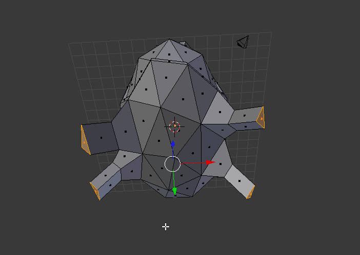 24. Extrude face tersebut dengan tombol E dan geser pointer sehingga bentuknya memanjang kedepan. Lakukan juga pada kaki yang menghadap kebelakang.